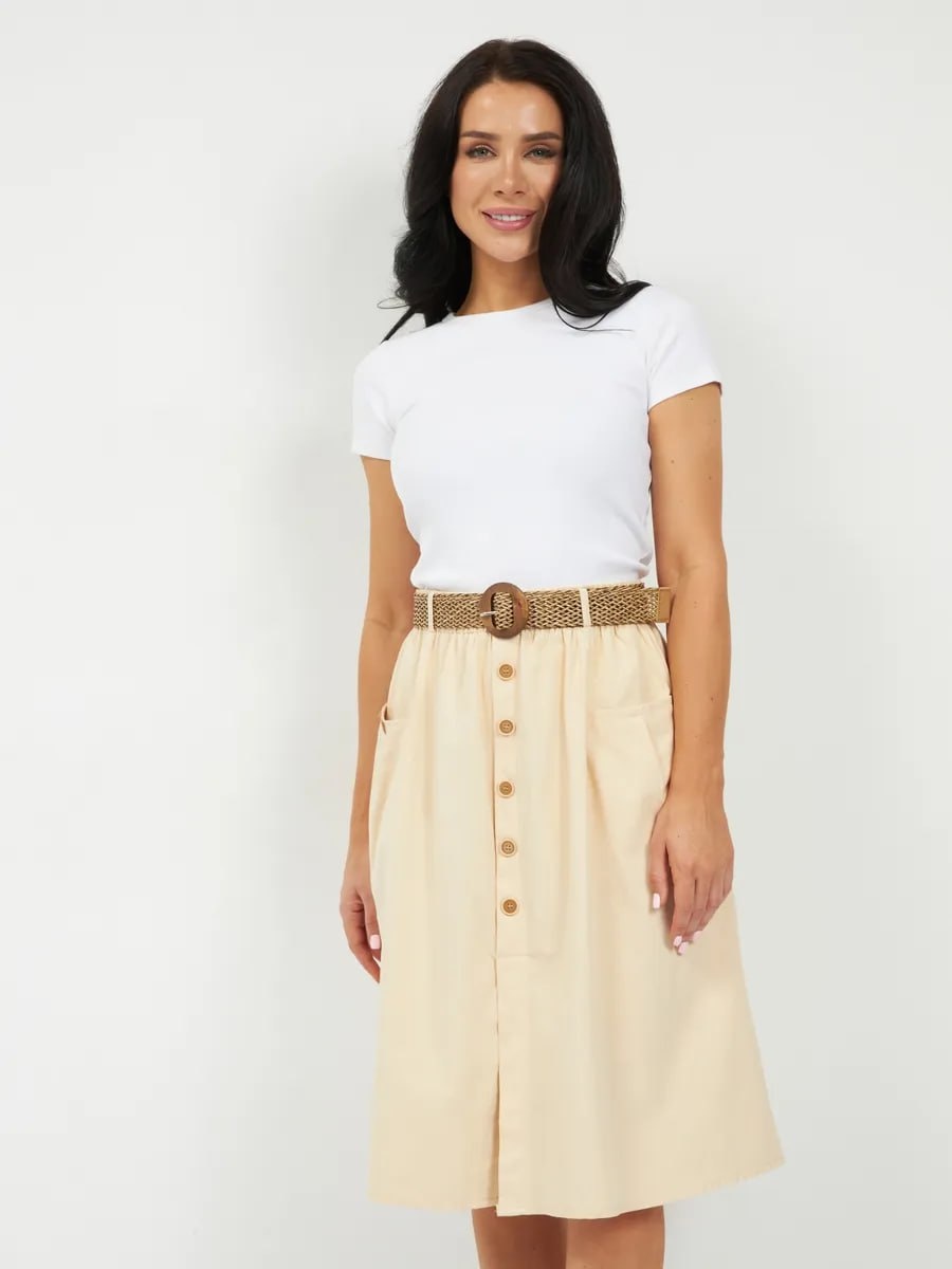 Юбка трапеция, без подкладки с застежкой на пуговицы. Завышенная талия, пояс на резинке (в комплекте). Длинная свободная юбка - эталон минимализма и настоящая находка для тех, кто вдумчиво подходит к созданию своего гардероба.