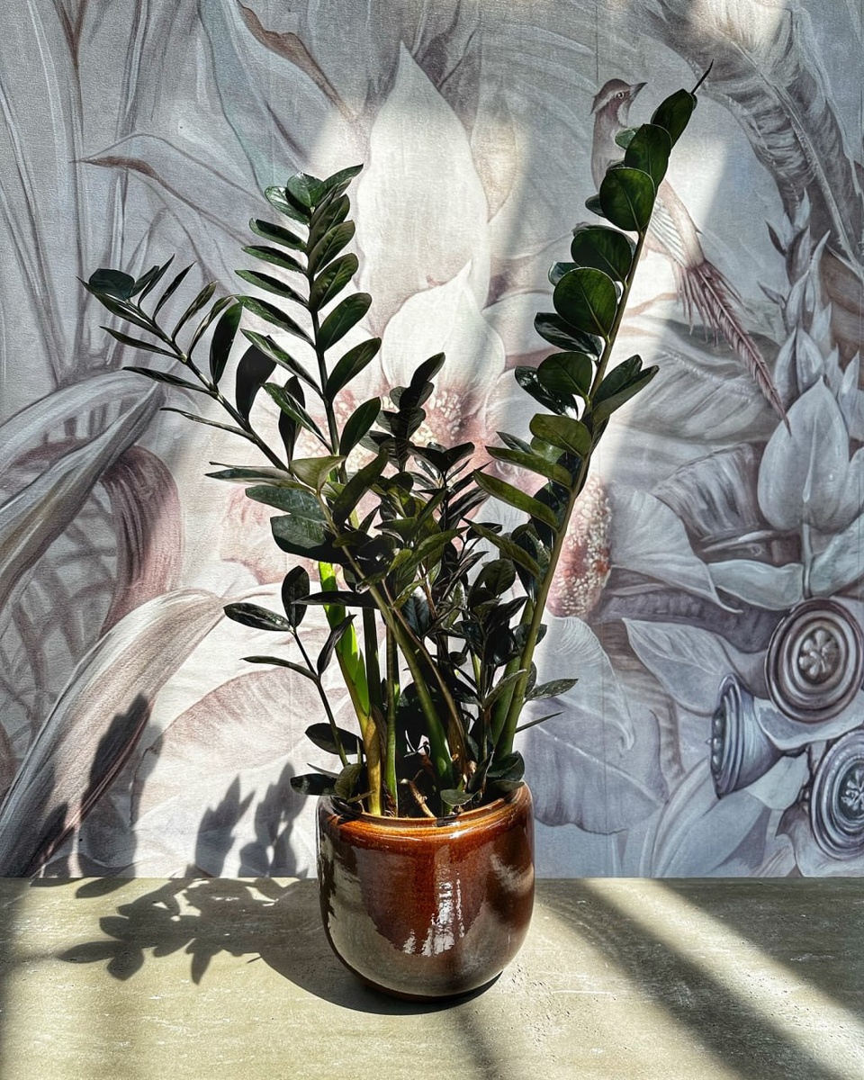 Его уникальность в том, что он хранит воду в своих толстеньких, кожистых, словно изумрудных листочках и других своих частях — это настоящий водяной резервуар. Вот почему пока все ваши растения сохнут и жалко выглядят, замиокулькас спокойно улыбается и продолжает расти!