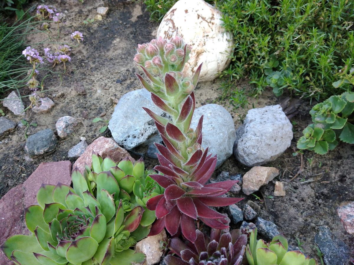 Всем самый дружеский привет! Нас заливают дожди. Такая вот погода. Жарило - жаловались. Заливает - плохо: трава буйствует, полоть невозможно. Писала как-то, что очень хочется увидеть, как цветут каменные розы. Ни разу не цвели. Увидела! Мечта сбылась! Решили в этом году преподнести сюрприз: буйство цветения! Не ожидала, что столько будет цвести. Да, они не те розы, от которых замирает сердце, у них нет запаха, но они удивляют. Возможно, не все со мной согласятся. Я говорю о себе. Жаль только, что показав свое цветение, растение умирает. Это ещё удивительнее: значит, они приходят, чтобы "процвести и умереть". Уважаемые мои друзья, порадуйтесь вместе со мной. Фотосессия каменных роз. Не буду утруждать вас буковками, давать объяснения, потому что виды, сорта и названия я не знаю. Эта набрала бутоны самая первая. Листайте галерею, смотрите, как она преображалась А эта удивила ещё больше: она набрала девять бутонов. Все показывать не буду, ещё несколько. И напоследок: набрала
