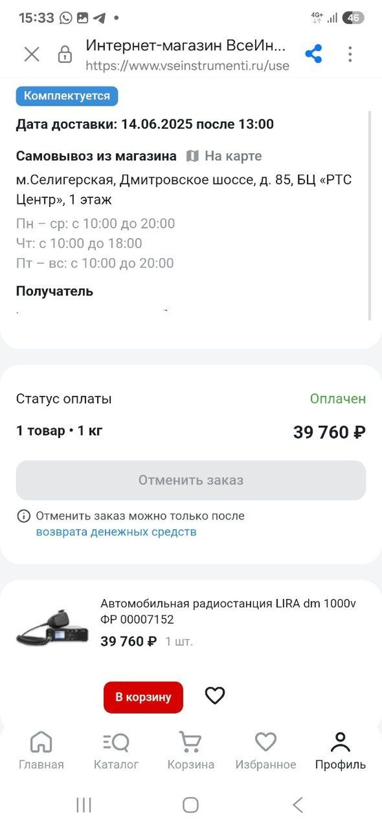 Рацию оплатила. Завтра можно забрать ☄️