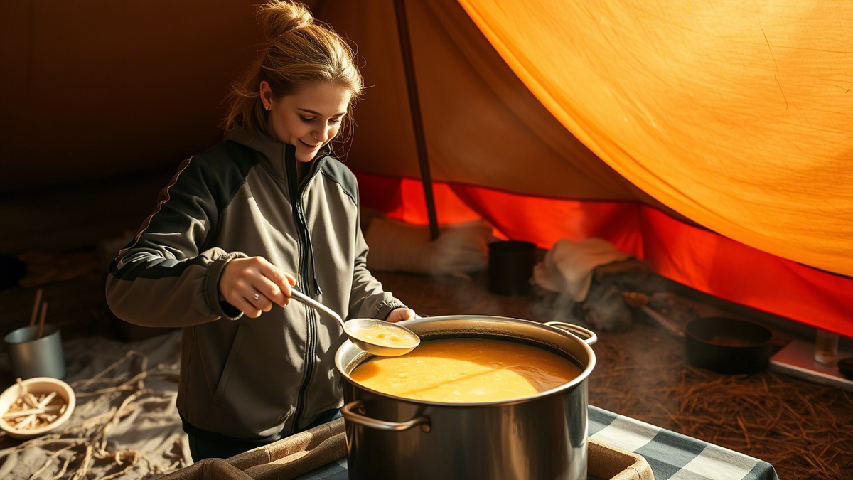 Они сидели в большой палатке. На улице было снежно и холодно, а внутри уютно и тепло. Катарина взяла на себя роль хозяйки и шустро разливала горячий борщ.