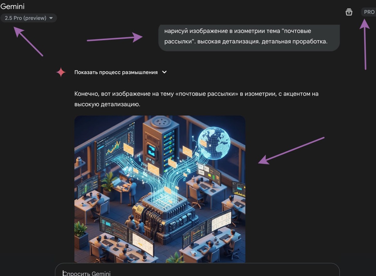 В режиме Gemini AI Pro вы можете рисовать очень много картинок прямо в браузере. См. пример. Русский язык понимает, можно вести диалог улучшая изображение... Вдруг не знали :) p.s. 2000 р. за 6 месяцев цена вопроса доступа к Gemini AI Pro из РФ. Я сам пользуюсь. Я думаю сейчас будут появляться проекты, где люди массово генерят картинки и продают по подписке. Ищите на ggsel - там легко найти. Русский ИТ бизнес
