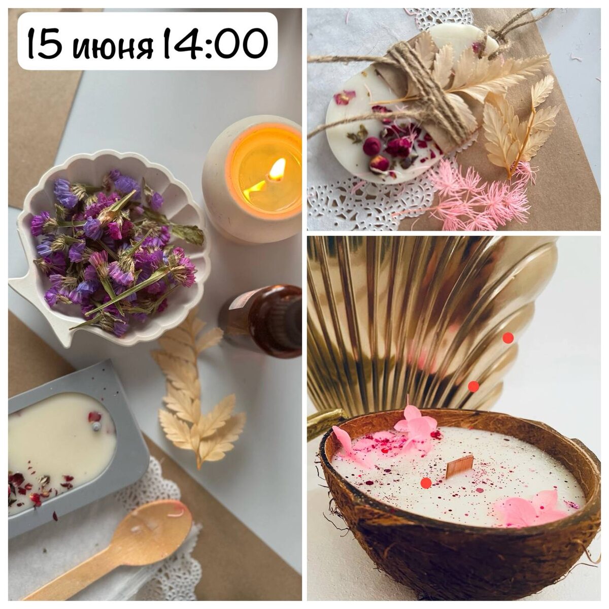 15 июня 14:00 открываем запись на Мастер-класс «Натуральные тропические свечи своими рукам+аромасаше