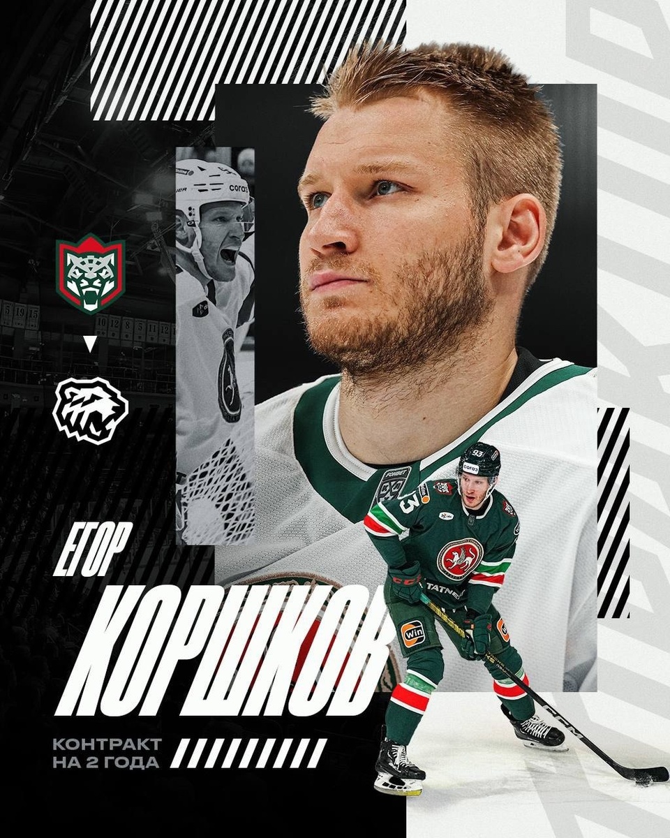 🚨Егор Коршков подписал контракт с «Трактором» на два года Егор Коршков стал игроком «Трактора». Срок контракта с форвардом рассчитан до конца сезона-2026/27. В минувшем сезоне Егор Коршков провел за «Ак Барс» 60 матчей в регулярном чемпионате и набрал 23 (8+15) очка. В плей-офф в его активе 1 передача в 5 играх. 11 июня «Ак Барс» расторг контракт с Коршковым по обоюдному согласию сторон. 📸Хоккейный клуб «Трактор» @nhockey