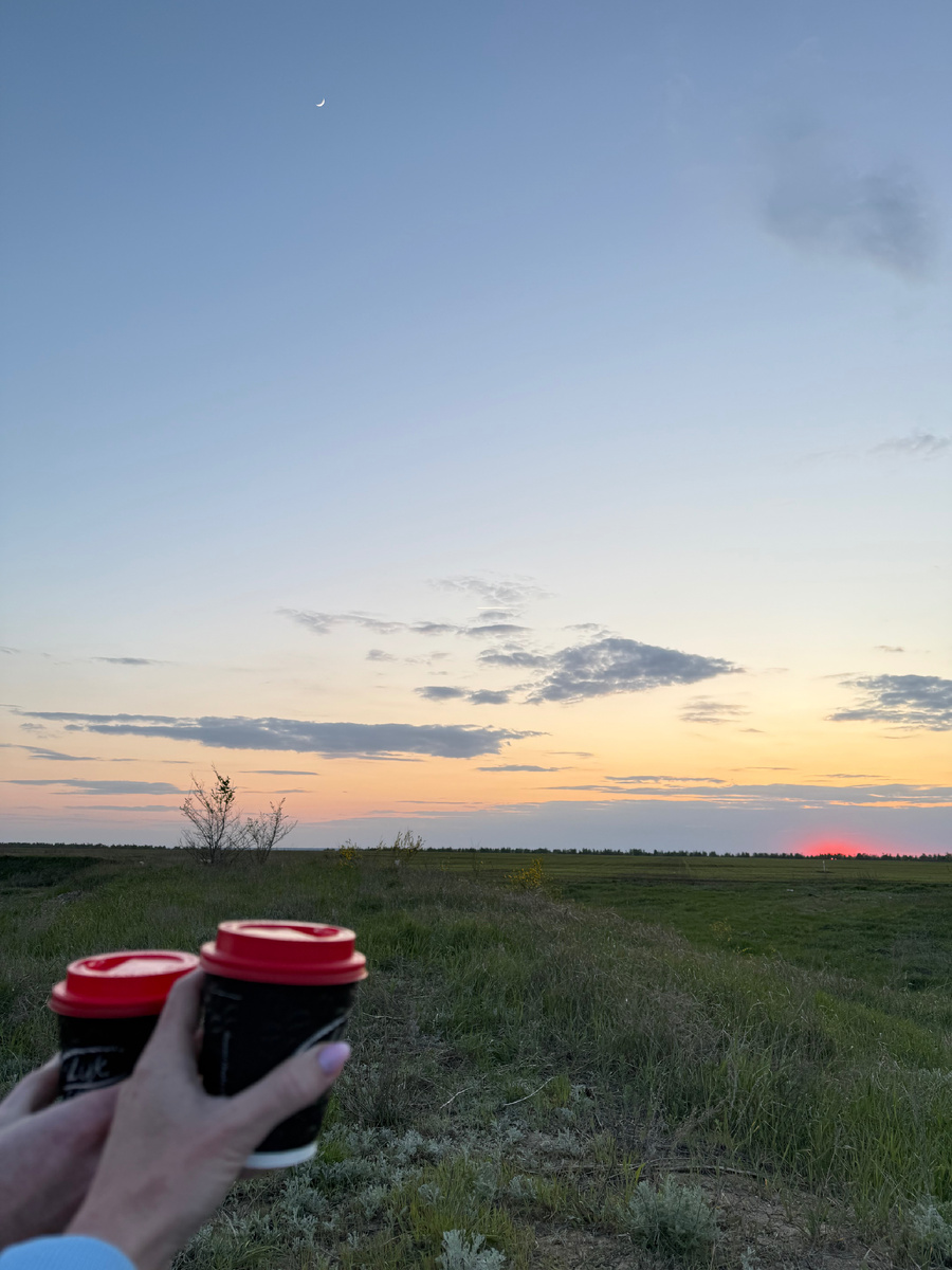 1 мая 7:30 утра - уже как традиция и мы вновь отправляемся в автопутешествие на Кавказ. В первый день планируем проехать Волгоград, переночевать и отправиться в Пятигорск. Погода хорошая, дорога без пробок. Мчим быстро и закат встречаем уже в Саратовской области. Но под Волгоградом нас ждала часовая пробка. Время позднее и мы решили остановиться на уже знакомой нам заправке Лукойл около Дубовки и переночевать в машине, как и в прошлом году. А на утро решили ехать через Калмыкию и Элисту, чтобы посмотреть на Золотую обитель Будды - крупнейший буддийский храм. По пути останавливались для фото. В прошлом году ехали через Астрахань, в Калмыкии дорога показалась более живописной. Калмыкия - единственная республика в Европе, исповедующая буддизм. Храм можно посетить бесплатно. Но интересно, что сначала пропускают туристические группы. Мы аккуратно протиснулись вместе с ними. В храме нам все показалось вычурно-ярким. Ближе к вечеру выехали в Пятигорск, т.к далее хотели проехать по одной