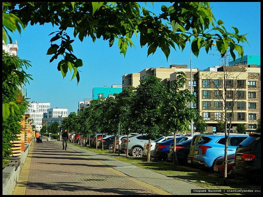 Продолжение фоторассказа, который состоялся летним утром. 1. Далее, после трамвайной линии, прошёл среди домов-кварталов. Лиственные деревья вдоль тротуаров потихоньку увеличиваются, растут год от года. 2. Ели рядом с подъездами первого дома тоже подрастают. 3. 4. 5. Ул. Счастливая рядом с ул. Лучистой. 6. 7. «Районы-кварталы, жилые массивы…» 8. Кто-то помешал сделать мне фотографию своей рукой. 9. Шутка. Это я нахожусь у скульптуры первой семьи Солнечного. А рука папы. 10. А это женская кисть руки - мамы. 11. Параллельные ряды домов, деревьев, автомобилей. 12. Ул. Чемпионов, 3. 13. Народ проснулся, задвигался. 14. 15. Ул. Чемпионов, 4. 16. Незаконченный ряд домов по Золотистому бульвару. 17. Перекрёсток ул. Счастливой и Золотистого бульвара. 18. Очередная «потеряшка». Кто-то положил на вазон. 19. На улице Счастливой много зелени. 20. Да и парк находится рядом. Главный вход в парк расположен как раз у перекрёстка ул. Счастливой и Золотистого бульвара. 21. Я сначал