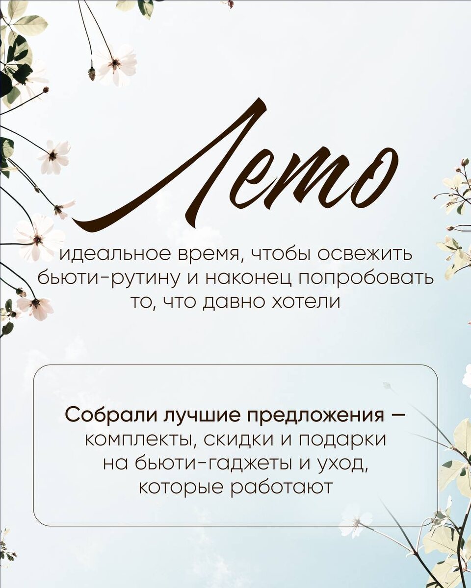 Если вы ждали знак, чтобы начать новый уход — вот он 🤍 Мы собрали всё, что действительно работает: аппараты, косметику и комбо-наборы со скидками до –25% На что стоит обратить внимание: 🤍 Для сияющей кожи и лифтинга: • iluminage Youth Activator Pro и Precise Touch Pro –15% + тинт от OOTD в подарок • MINI+ от NuFACE –20% в цвете Midnight Black 🤍 Для гладкости без боли: • фотоэпилятор D'Evi Skin PRO –20% • фотоэпилятор SmoothSkin Pure Mini Lite –25% 🤍 Для обновления бьюти-ритуала: • щеточка массажер для лица от L&L Skin EMI Pro –25% + повязка в подарок • Аппарат для омоложения лица от L&L Skin VIA Pro –10% + косметичка и повязка в подарок • массажная расческа с функцией питания волос KUMI и маска массажер для глаза L&L Skin ELAX –15% 🤍 Для глубокого увлажнения кожи: • уходовая косметика от OOTD с гиалуроновой кислотой и коллагеном –20% Пишите в комментариях, если не знаете, с чего начать – соберем ваш идеальный бьюти-уход🫶🏻