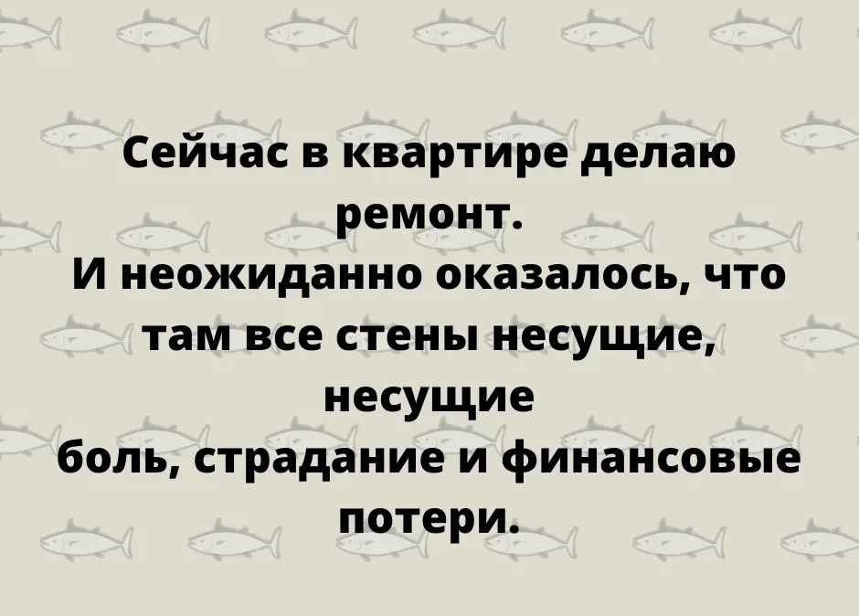 Сын к отцу подходит: — Пап, пойдём погуляем, на санках покатаемся! Через час отец с маленьким сыном на прогулке. Сын: — Папа, я больше никогда не пойду с тобой на санках кататься! — Не болтай, тяни быстрее. *** Маша всё любила делать по-своему. — Когда все девочки учились целоваться на помидорах, она училась целоваться на огурцах. — Позже выяснилось, что не прогадала. *** Приходит Гена к Чебурашке в гости, садятся за стол: — Гена, а тебе тарелку чистую или мытую? — Конечно, чистую. Друзья сидят, кушают, Гена спрашивает: — А в чем разница между чистой и мытой тарелкой? — Мытую я сам мыл, а чистую Тобик вылизал *** Женщины! Перестаньте просить у Деда Мороза непьющих и работящих мужчин! Уже пол Средней Азии к нам переехало. *** Если вы видите пьющего в одиночку человека — не спешите с выводами. Возможно это — корпоратив Индивидуального Предпринимателя *** — Сынок, хочешь поехать в «Музей советских вещей и быта»? — Папа, я больше на дачу не поеду! *** Не спрашивай у мужчины про его дох