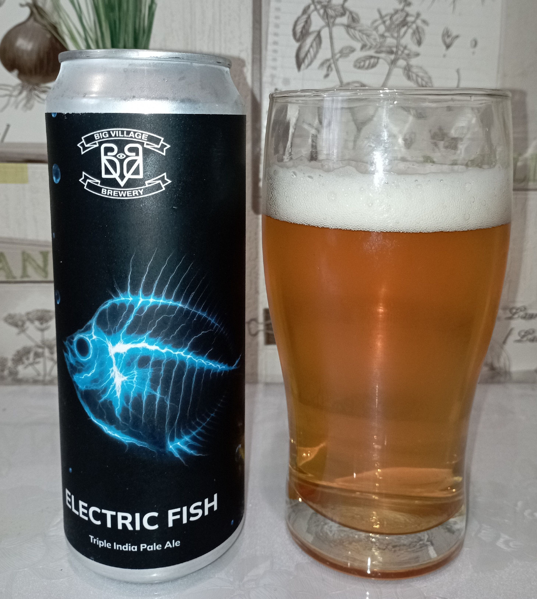 И снова рубрика "крепкий понедельник" у меня на канале. Тройных ИПА сейчас варится не так уж и мало. Но доезжает до Рязани их не очень много. Поэтому я без раздумий взял Triple IPA от Big Village Brewery. Конечно, пока баночка томилась в холодильнике, многие коллеги успели попробовать это пиво (и даже написать обзоры!). Но у меня дошла до него очередь только сейчас. Electric Fish. ЭНС 21.5. Алкоголь 10.0. IBU 99. Производитель - ООО "Биг Вилладж". Краснодар. Стиль - IPA - Triple Дата производства - 19.05.2025 Дата дегустации - 12.06.2025 Оценка на untappd - 4.20 Объем стандартный для банки - 0.45л. Цвет - янтарный. Пенная шапка средних размеров и стойкости. Аромат для трипла не сильно выраженный - тропические фрукты. Во вкусе те же тропические фрукты, мощная горечь. И очень сухо, даже чересчур. Алкоголь хорошо скрыт. Пьется нормально. Субъективно - слишком засушили. Для трипла хорошо, не более. Субъективная оценка: 4.0 Куплю ли еще: нет.