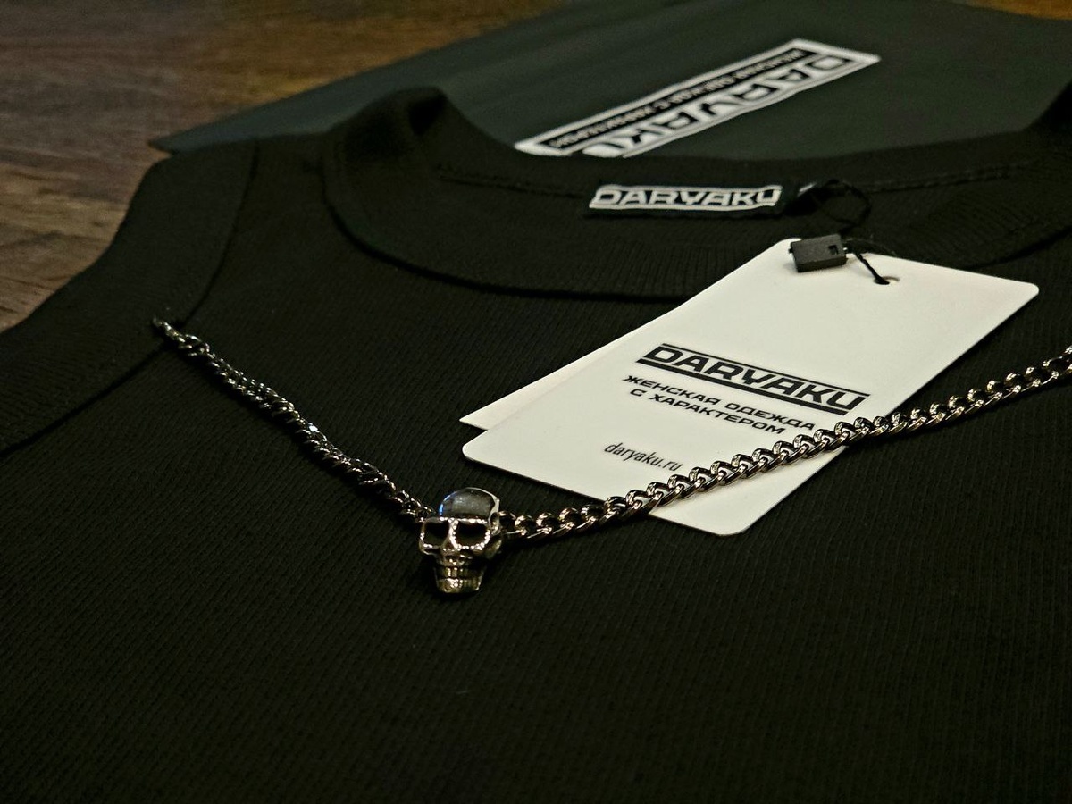 Эта майка — идеальный выбор для уверенных в себе женщин, которые не боятся выделяться из толпы🖤 Ключевые особенности: • Материал: Высококачественный хлопок, который обеспечивает комфорт и воздухопроницаемость, позволяя вашей коже дышать даже в самые жаркие дни. • Стиль: Рок стиль в каждой детали! Эта майка отлично сочетается как с джинсами, так и с кожаными брюками, создавая идеальный аутфит для вечеринки или прогулки по городу. • Подвеска: Уникальная подвеска в виде черепа придаёт изделию особый шарм и делает его настоящим акцентом вашего гардероба. ОТЛИЧНЫЙ ВАРИАНТ ДЛЯ ТЕХ, У КОГО АЛЛЕРГИЯ НА МЕТАЛЛ, а красиво выглядеть хочется. Ведь подвеска никак не соприкасается с вашей кожей и не вызывает аллергической реакции😉 изготовлена из нержавеющей стали. Но снимать перед стирки всё же рекомендуем 🖤 Как носить: Сочетайте с кожаной курткой и ботинками на платформе для создания эффектного рок-образа или с легкими шортами и кроссовками для более повседневного стиля. Не упустите возм
