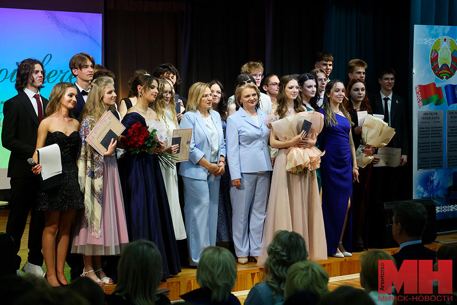 Средний балл аттестата выпускников по традиции очень высокий. К примеру, трое одиннадцатиклассников получили аттестаты, где по всем предметам стоят исключительно десятибалльные оценки. А на вступительных испытаниях в этом году пятеро учеников показали максимальный результат. Четырем выпускникам золотые медали вручил председатель Мингорисполкома Владимир Кухарев.