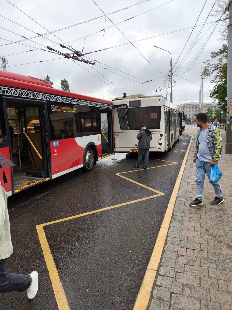 🚌 ДТП с автобусами на проспекте Ленина: столкновение на остановке