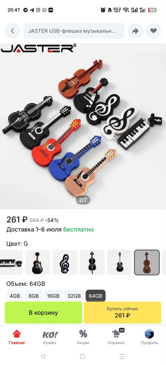 JASTER USB-флешка музыкальный инструмент 64 ГБ за 261 ₽ - уже со скидкой -54