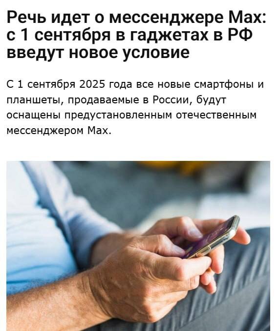 Российский мессенджер Max с 1 сентября будет предустановлен на всех телефонах в стране. Госдума одобрила закон, согласно которому на всех продаваемых в России смартфонах должно быть установлено национальное приложение. В него будут интегрированы Госуслуги и цифровой ID. NeuroFlux #ИИ #Технологии #наука #нейросети #ИнтернетСвобода #ИскусственныйИнтеллект