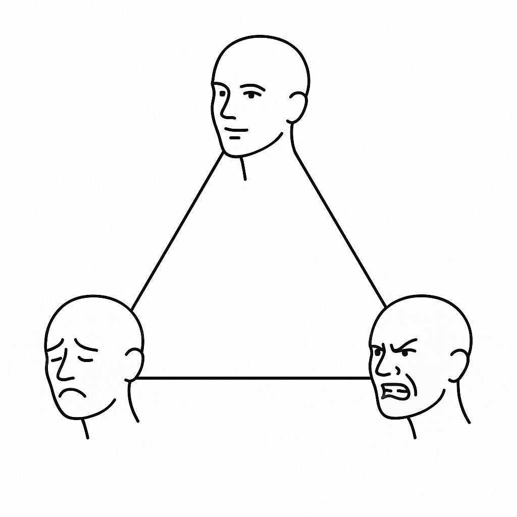 Как наиболее экологично выйти из треугольника Карпмана? Треугольник Карпмана — это схема взаимодействия между людьми, при которой участники занимают одну из трёх ролей: - Жертва («бедный я несчастный, у меня снова ничего не получилось»),