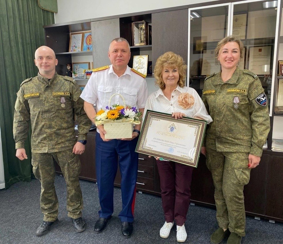 За содействие в решении возложенных на Следственный комитет России задач от имени Председателя СК России А.И. Бастрыкина руководитель регионального управления вручил Н. Г. Куликовских почетную грамоту и поблагодарил за сотрудничество.