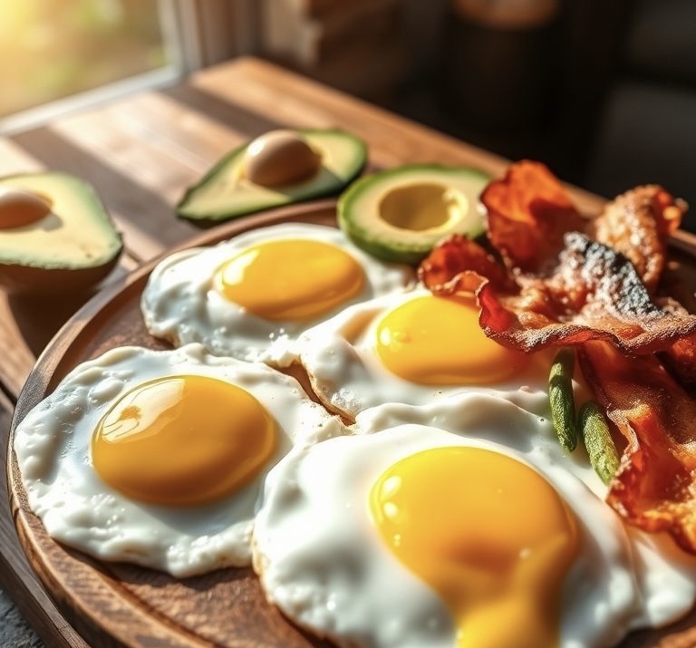🌞 "Солнечный завтрак: облака из яиц с авокадо и хрустящим беконом"