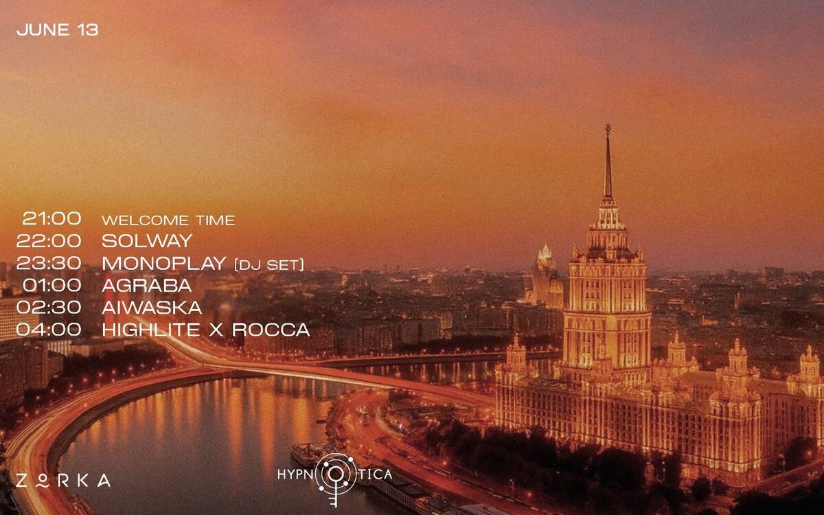 ZORKA X HYPNOTICA 13 июня ночь полного погружения с @hypnoticasounds Это не просто вечер музыки, а особая атмосфера – глубокие сеты и уникальные звучания от артистов, которые ведут за собой в мир новых эмоций 🎫 Билеты по ссылке Резерв +79265661599 FC/DC/ 21+ 📆 13 июня, с 22:00 📍Зорька терраса и бар, Москва, ул. Косыгина, 28с1