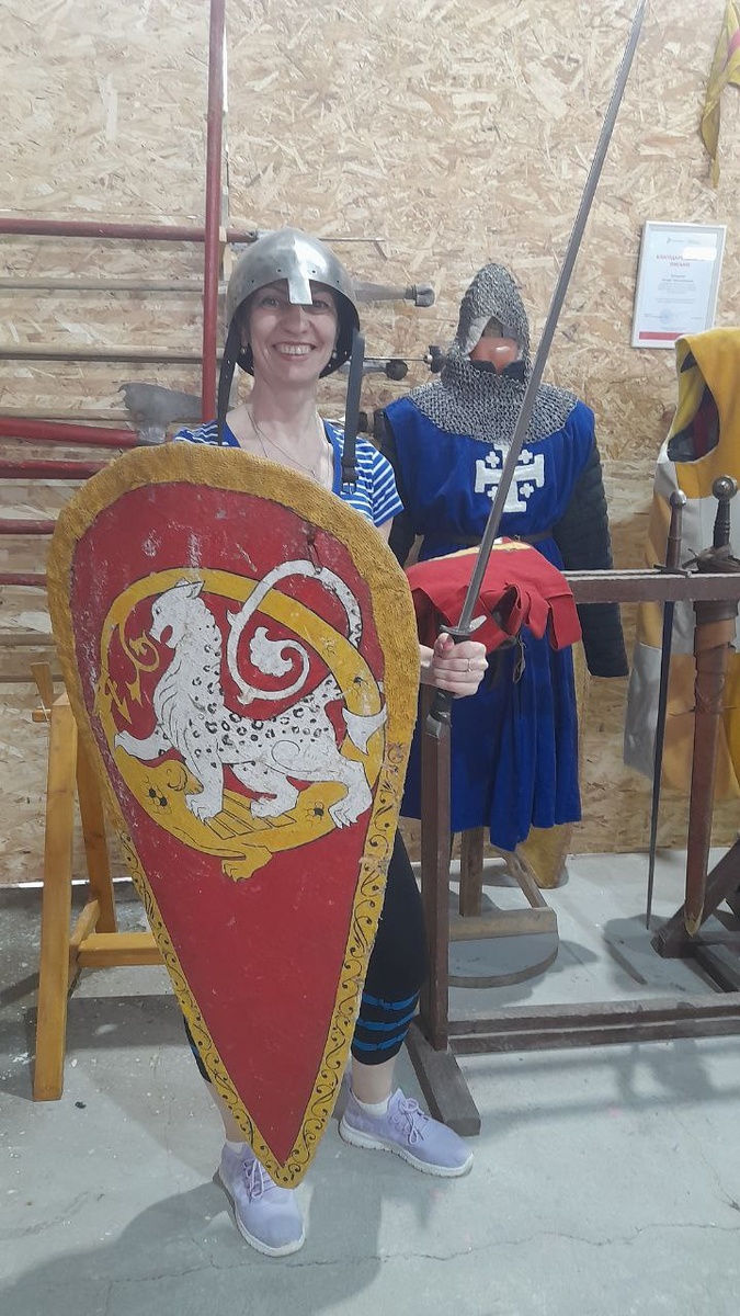 Хочу поделиться впечатлениями от потрясающей встречи, которая произошла совсем недавно. Я всё больше убеждаюсь, как много увлеченных и интересных людей живет в нашем городе! Недавно я (конечно, с дружной женской компанией!) побывала в гостях у клуба исторической реконструкции и фехтования “Орден”. Представляете, какая атмосфера?! Когда нас встретил руководитель клуба, Игорь, его лицо выразило легкое недоумение: “А вы зачем пришли?)” Но это только до первого рассказа! Уже через несколько минут стало ясно, что нам всё безумно интересно. Мы слушали, буквально затаив дыхание, о клубе, о его истории, о жизни в Средние века. Мы задавали вопросы, не стесняясь любопытства! Мы, как дети, хотели всё потрогать, примерить на себя! Как устоять перед соблазном подержать настоящий меч Довмонта? Пусть это и копия, но какая же по форме и весу! Первоначально планировали провести там около часа, но всё затянулось! Час мы провели, слушая увлекательный рассказ Игоря! 😄 А пото