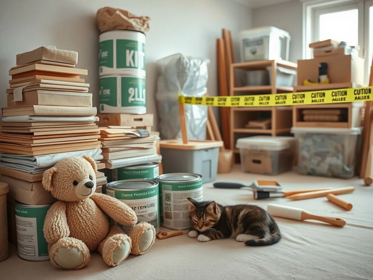 Знакомая история: вы наконец решились на ремонт, но в голове тут же возникают образы – малыш тянет пальцы к мокрой стене, котёнок ныряет в банку с краской, а по всему дому оседает строительная пыль. Как не превратить обновление жилья в кошмар? Давайте разберёмся, как сохранить нервы, здоровье и лапы хвостатых животов во время ремонта!