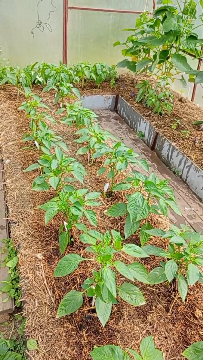 И снова здравствуйте! Сегодня 13 июня, и мои новые тарелочки. Но сначала немного о предыдущих днях, где было много работы в огороде и цветниках. Не меньше было дел и дома. В последние дни очень похолодало. Днем не теплее +18-20, да еще и с ветром, а зачастую и с дождем, ночью вообще температура приближается к +10-12. Поэтому в плохую погоду стараюсь работать в теплицах. В огуречной теплице пасынковала перцы, подвязывала огурцы. Погода пасмурная, поэтому поливала там днем, а вечером опрыскивала от болезней и вредителей. После обеда перенесла дела в теплицу с помидорами. И снова борьба с пасынками и лишней листвой. Вечером - профилактическая обработка от вредителей и болезней. Плохая погода не пугает петунии: они цветут все больше и больше. А вот трава в дождь прет и прет. Да и овощи приходится чаще опрыскивать от болезней и вредителей: пополнила запасы в своей огородной аптечке. Стриж и Лазурит - это от сорняков. Горчичный жмых подсыпаю на грядки с луком и чесноком, а также добавляю по
