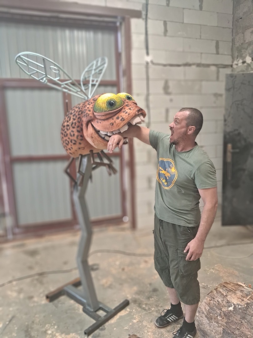 Новую скульптуру создал известный на всю страну воронежец, резчик бензопилой Александр Ивченко. На сей раз героиней арт-объекта стала..муха. Еще и леопардовая. – Мы желаем, чтобы мухи не кусались. Ну а уж если и куснет разок, то пусть это будет КАКАЯ муха: та, что подарит заряд позитива, бодрости и правильную сумасшедшинку, – рассказал автор. У скульптуры – принтованная шерстка, огромные зеленые глаза и не менее большие зубы. Автор иронично позирует со своим творением, засунув голову ей в пасть. Сама муха выглядит довольно обаятельно. При этом Ивченко ответил, что муха вошла в целую серию работ, представить которые хотят в отдельно месте.