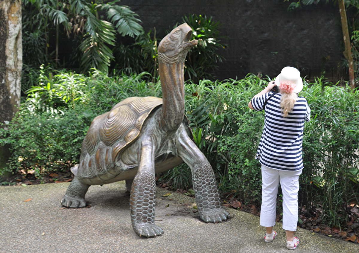 На нижнем фото – Сингапурский Зоопарк. Гигантская галапагосская черепаха, сохранившаяся, увы, только в бронзе.