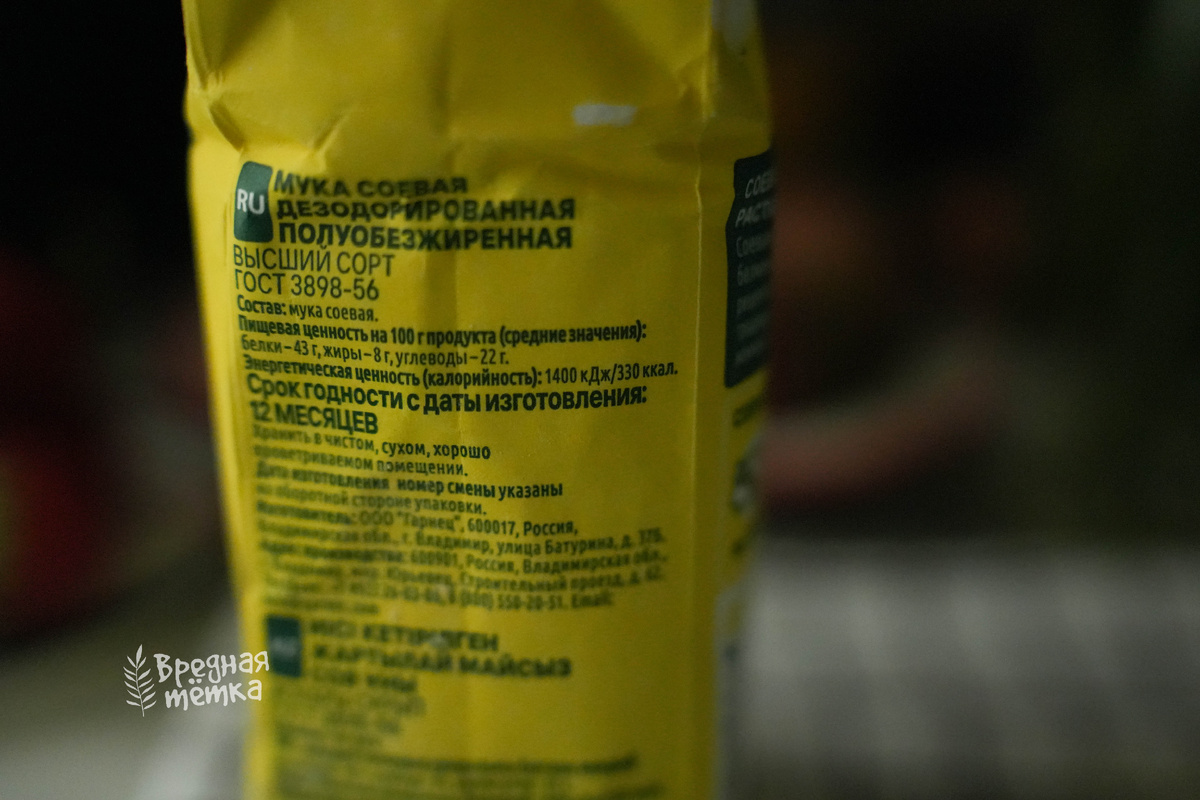 Купила я две пачки соевой муки потому, что в ней супермного белка. А я сейчас как раз по белку заморачиваюсь сильно. Ну и, конечно, мне интересно попробовать с этой соевой мукой всякое готовить. Теперь я буду пытать вас рецептами с соевой мукой пока эти две пачки не закончатся. В планах творожная галета с сыром и томатами на соевой муке и булочки наверное. И блинчики. И ещё всякое. Первым экспериментом были сырники. Те, кто следит за количеством белка и углеводов, меня поймут. В 100 гр соевой муки 40 гр белка! В пшеничной 9-12. Сахар не добавляю – просто подаю со сладким соусом. Жарю на низком огне. Такие сырники от изделий на обычной муке почти ничем не отличаются. Разве что совсем чуточку нежнее чем обычные — переворачивать нужно осторожнее. У меня полуобезжиренная мука. А бывает ещё не обезжиренная и обезжиренная. Нужно будет тоже попробовать. Промежуточные выводы такие: мука без вкуса и запаха. Цвет кремовый. Больше пока никаких наблюдений так как на сырники этой муки нужно немного