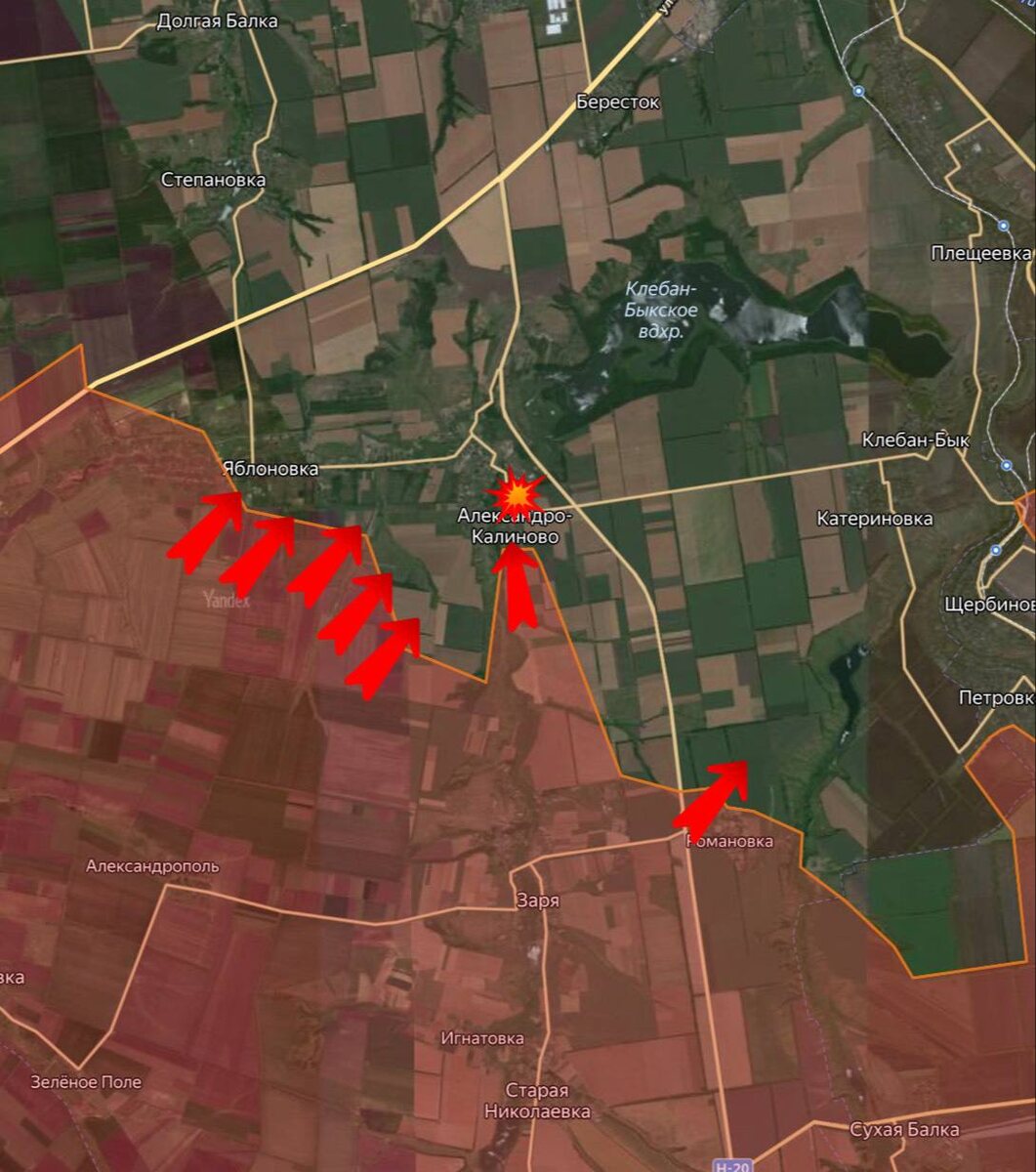 Также давим на Александрово-Калиново с юга, идёт обработка врага в самом селе перед началом штурмовых действий.
