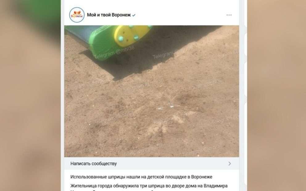 Жители Воронежа опасаются за своих детей из-за использованных шприцев, которые разбросаны на площадке в Северном микрорайоне. Родители пожаловались на валяющиеся мединструменты в соцсетях в пятницу, 13 июня. Женщина заметила три шприца на детской площадке во дворе дома на улице Владимира Невского. Они лежали рядом с горкой, с которой скатывались ребята. Родители возмущаются: неужели теперь придется постоянно следить за каждым камешком, чтобы ребенок не поранился. Происхождение этих шприцев неизвестно, и выяснять это нет никакого желания, ведь нахождение таких предметов на территории, предназначенной для детей, неприемлемо.