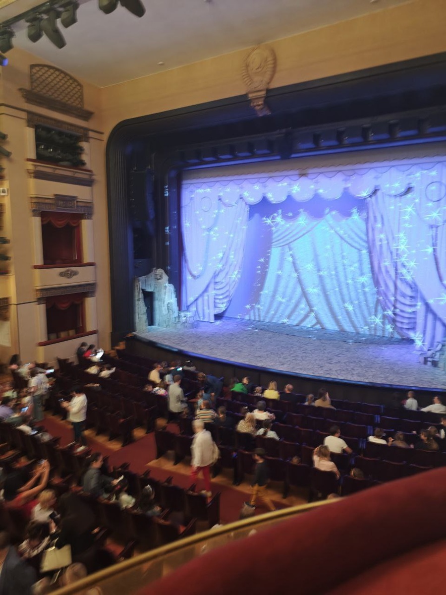 Спектакль "Кот в сапогах" Театр Вахтангова ⏰ 2 часа c 1 антрактом Назвать постановку классической не получится:здесь появляются и совсем новые герои: грозный Ураган и находчивая Статс-дама, весёлые разбойники, говорящие деревья и птицы. А новые герои – значит, и новые приключения. Сразу обращают на себя внимание: интерактивный экран - внутри сцены и очень красочные декорации, к сожалению не объёмные. Мельница, стоги сена, лес. Вот прямо хотелось более подробных и наполненных декораций. Тем более сцена позволяет. Но создатели дополняли спецэффектами (дул ветер, колдовство - молнии), музыкой и танцами. Очень нам понравилась карета, красочно сделана - есть форма, но несли ее те, кто был внутри, лошадь - картонка - тоже хотелось объёма. А вот мост через реку - очень хорошо придуман - герои могут стоять на разных уровнях, создается впечатление обширного пространства. Игрушечные вставки были хороши - кот в начале, птенчик, мышка, конь. Они двигались - очень интересно было смотреть. В с