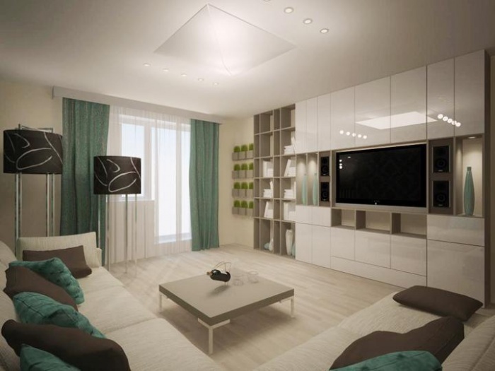 Для дизайна интерьера площадью 18 м2 необходимо выбирать мебель изящную и не массивную. Большое количество мебели в такой комнате будет неуместным, поэтому лучше всего обойтись минимумом.