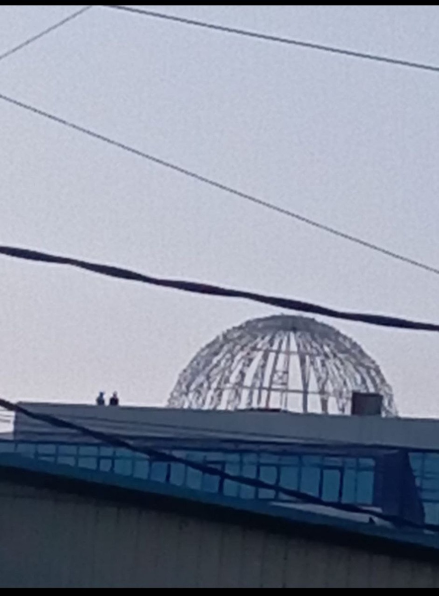 Володарского и Володи Головатого, стоит заброшенное здание синего цвета 13 этажей, дети лазают на крыше и на куполе