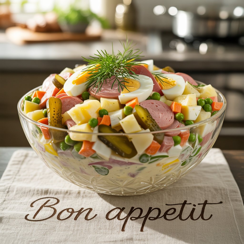 Салат “Оливье”, или “Русский салат”, - это, без сомнения, самый узнаваемый и любимый салат на постсоветском пространстве, особенно в период новогодних праздников. Он настолько прочно вошел в нашу кулинарную культуру, что представить себе праздничный стол без тарелки “Оливье” просто невозможно. Несмотря на то, что существует множество вариаций этого салата, мы расскажем вам о классическом рецепте, который передавался из поколения в поколение, чтобы ваш “Оливье” получился именно таким, как его помнят и любят все. “Оливье” - это салат, который можно приготовить по-разному, но главное - сделать его с любовью и хорошим настроением. Наслаждайтесь этим вечным вкусом праздника и делитесь им с друзьями и близкими! Приятного аппетита!