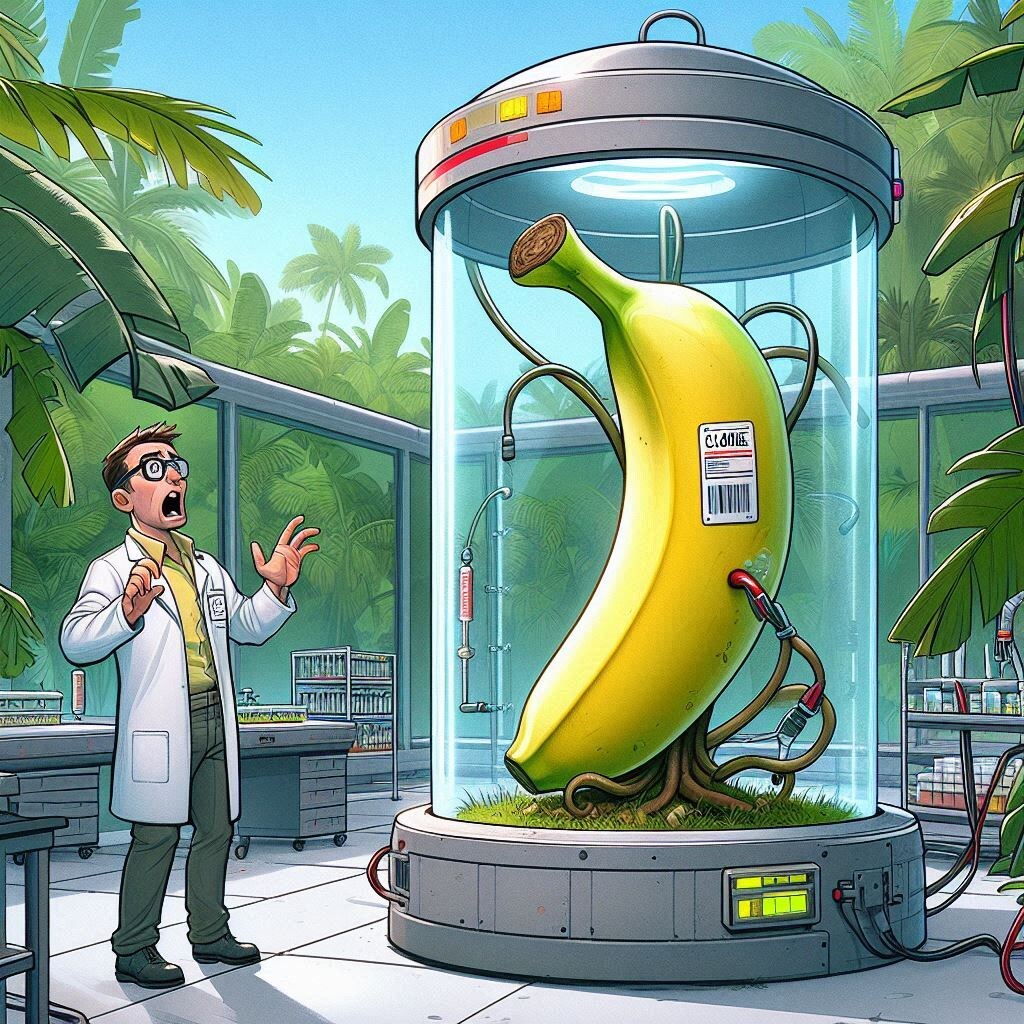Ты держишь банан. Думаешь, это просто вкусный фрукт. Но вот поворот: банан - это ягода. А куст, на котором он растёт - не дерево, а… трава. Добро пожаловать в мир бананов: тут всё наоборот, а ты - главный участник тропического абсурда. Подожди, что значит “банан - ягода”? По ботанике, ягода - это плод, который растёт из одного цветка с одним яичником и имеет много семян внутри. А банан? Всё сходится. Банан - ягодка. Такая, знаешь, накачанная, без косточек, но с характером. Фруктовая шутка: — Это ягода? — Да. — А клубника? — Нет. — Ботаника, ты в порядке? Почему у бананов нет косточек? Потому что у бананов кризис идентичности. Они стали жертвами прогресса. Современные бананы - это гибриды, выведенные людьми. Они стерильны, как принтер в отпуске, и не могут размножаться без нас. Проще говоря: мы выращиваем бананы вручную, с любовью и контролем. Каждый банан, который ты ешь, результат клонирования. Это буквально копия предыдущего банана. Да, ты ешь клон. Добро пожаловат