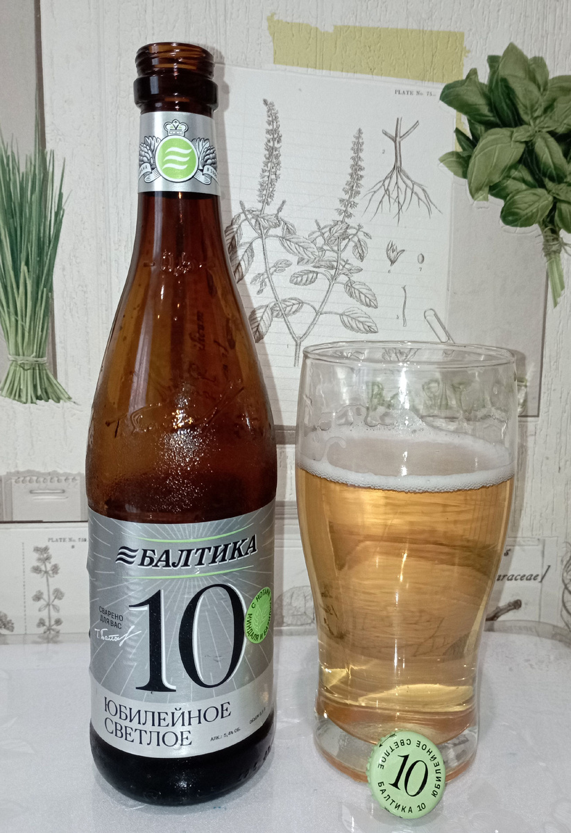 Выпуск "десятки" стал для меня сюрпризом. Оригинальная №10 выпускалась достаточно давно, в 00-е. Мне вроде бы это пиво нравилось, но регулярно я его не покупал, так как оно стоило относительно недешево и разливалось в бутылки 0.33л. А откуда у студента лишние деньги?! Вероятно, именно с выпуском "десятки" было принято решение привести "номерную" линейку к единому стилю. Во всяком случае уже видел 0, 3, 7, 8 и собственно 10 с новыми этикетками. Будут ли остальные "номерные" сорта в этом стиле? Посмотрим. Данная бутылочка была куплена в обычном деревенском магазине за 118р. Балтика №10 Юбилейное светлое. Алкоголь 5.4. ЭНС - не указано. IBU - не указано. Производитель - ООО "Пивоваренная компания "Балтика". Санкт-Петербург. Стиль - Lager - Other Дата производства - 21.05.2025 Дата дегустации - 12.06.2025 Оценка на untappd - 3.44 "Балтика №10 Юбилейное - достаточно насыщенный и при этом освежающий светлый лагер, во вкусе которого солодовые и хмелевые ноты изящно переплетаются со сладковат