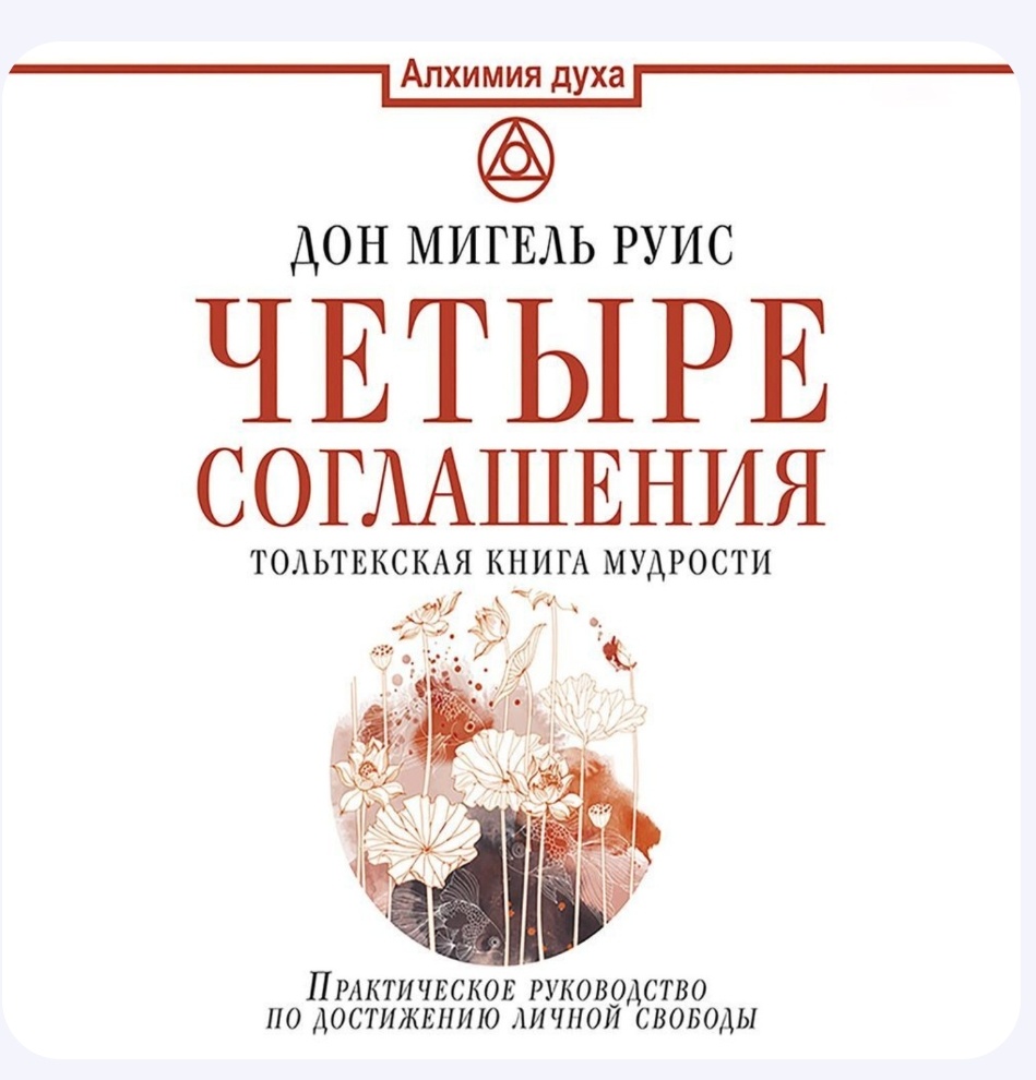 Делюсь прочитанным. 📚 О чем книга? Это небольшая, очень легко читаемая книжица, в которой автор, Дон Мигель Руис, делится древней мудростью индейцев-тольтеков. Главная идея — мы сами создаём себе страдания из-за установок и убеждений, которые в нас заложили с детства: что можно, что нельзя, как нас будут оценивать и т.п. Руис предлагает «перепрошить» себя с помощью четырёх простых соглашений — как новых правил жизни. Сначала звучит банально, но когда начинаешь это реально применять, понимаешь, как часто мы нарушаем эти принципы и из-за этого теряем энергию, свободу, радость. 📝 Четыре соглашения: 1️⃣ Будь безупречен в своих словах Говори честно, искренне, не используй слова во вред себе или другим. Наши слова — это сила, которая может как лечить, так и ранить. Например, не стоит себя ругать ("я глупый", "у меня не получится") — это тоже разрушительные слова. 2️⃣ Не принимай ничего на свой счет То, что другие о тебе говорят или делают, это отражение их внутреннего мира, их боли,