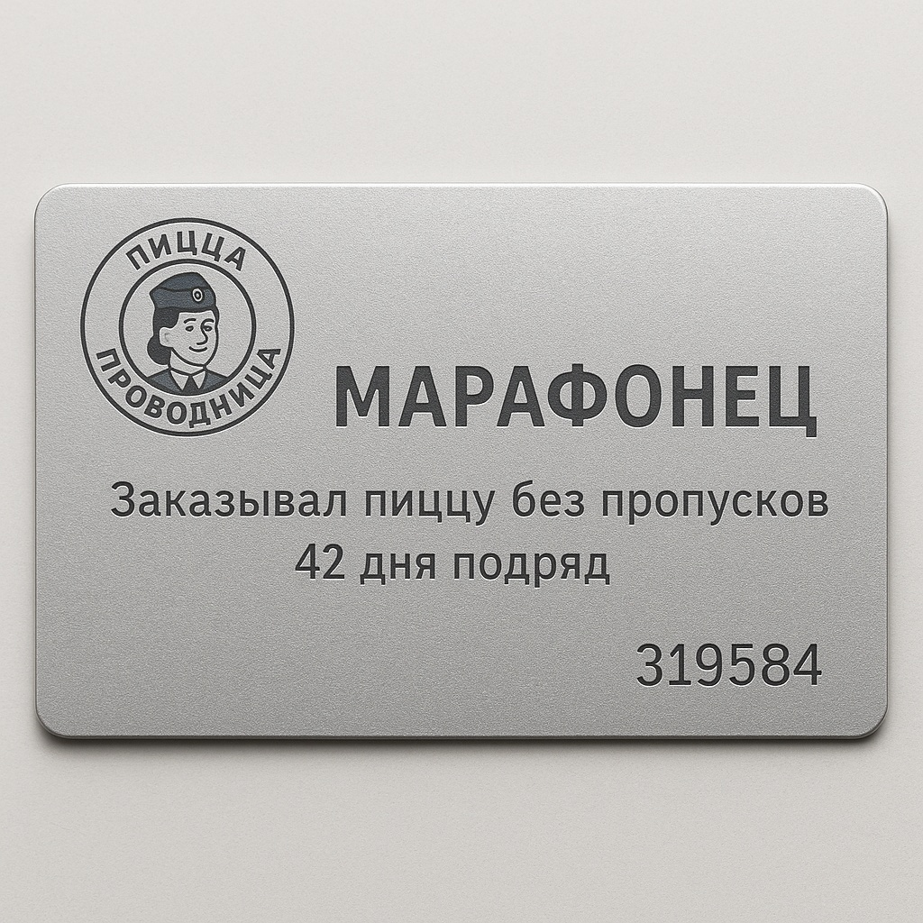 5. Марафонец. Заказывал пиццу без пропусков 42 дня подряд.