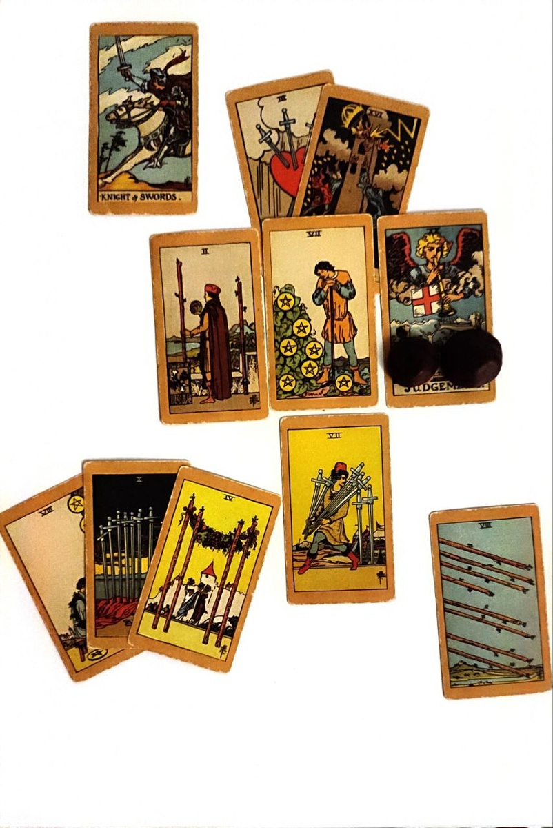 Несмотря на внутреннюю бурю, в душе он размышляет и оценивает происходящее. 7 Пентаклей — карта терпения и ожидания плодов своего труда. Он задумчив, возможно, пытается понять, действите