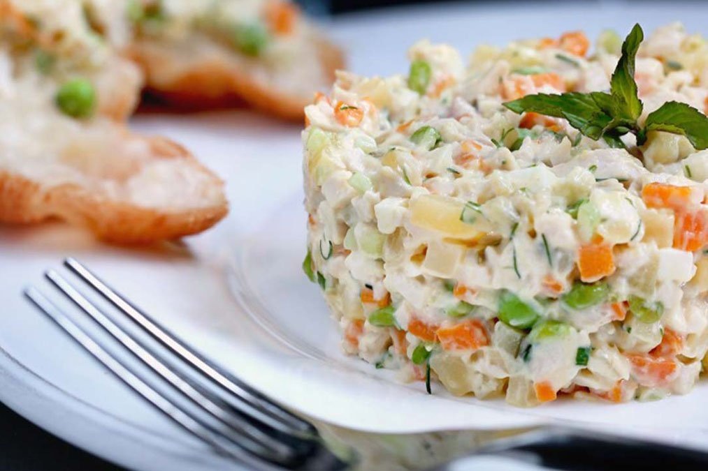 О! Об этом салате можно разговаривать бесконечно и творить его на разные лады. Я люблю этот салат только со свежим огурцом или маринованным и, боже упаси, без лука. Моя сестра любит этот салат с соленым огурцом и только так. С языком, с отварной говядиной, с колбасой, с ветчиной, с сосисками, с карбонатом... вариантов масса на любой вкус. Дальше идёт вариация с красной рыбой — а-ля «По-русски». С курицей это уже «Столичный». Все эти вариации тоже называются по-разному. И когда я читаю «Оливье с треской и яблоком»... простите меня, но это не Оливье. Наш любимый тазик Оливье — только с докторской колбасой. И с соленым огурцом. А все остальные вариации — это уже дело вкуса. Вариация Оливье с сосисками: Это моя нежная память из детства. У нас в семье готовил только папа. Однажды он приготовил вариацию Оливье с молочными сосисками и добавил кисло-сладкое яблоко. Ммммм😋 Тут главное не переборщить. Яблоко должно быть только ненавязчивым акцентом. Оливье с языком, говядиной только с маринов