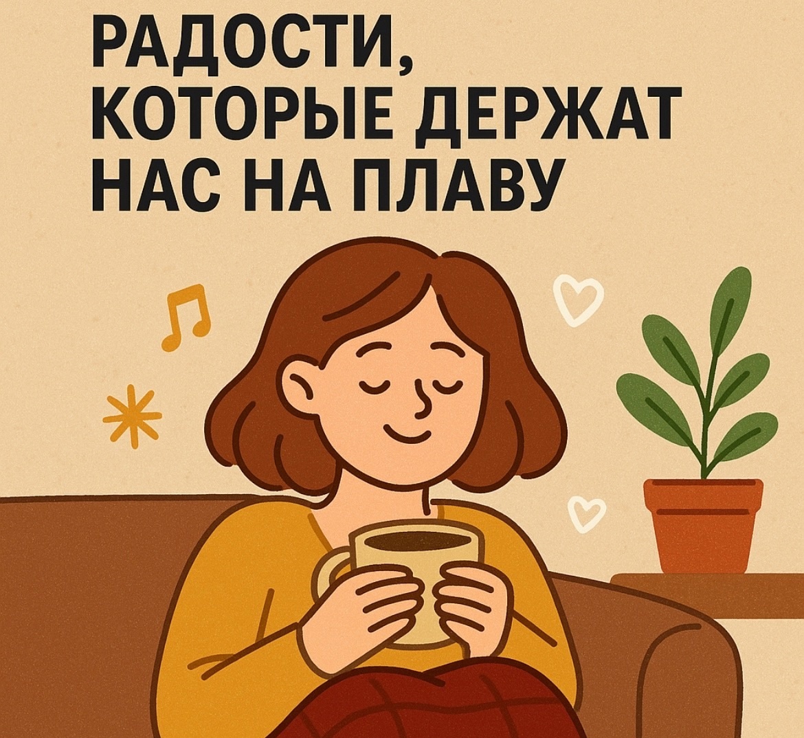 У каждого взрослого человека есть маленькие ритуалы, за которые он держится. Чашка утреннего кофе в тишине. Тёплые носки в выходной. Чистая постель после долгого дня. Песня в наушниках, которая будто говорит от твоего имени. Это мелочи. Кто-то скажет - ерунда. Но именно из этих «пустяков» собирается ощущение жизни. Настоящей. Своей. Не той, где надо соответствовать, бороться, спешить. А той, где просто хорошо. По‑человечески. Сегодня хочу поговорить о таких тихих радостях. О вещах, которые не кричат, но спасают. О чём-то очень простом, но нужном. ⸻ 1. Первые 10 минут тишины утром Когда ещё никого нет. Телефон не звонит. Никто ничего не требует. Ты просто сидишь, смотришь в окно, держишь кружку. Мир только просыпается, и ты вместе с ним. Это момент, когда ты - не родитель, не работник, не сосед. Ты - просто ты. В тишине. И этого иногда достаточно. ⸻ 2. Тост с маслом Иногда счастье - это не новое достижение, а поджаренный тост с настоящим сливочным маслом. Или пирожок из магазина за у