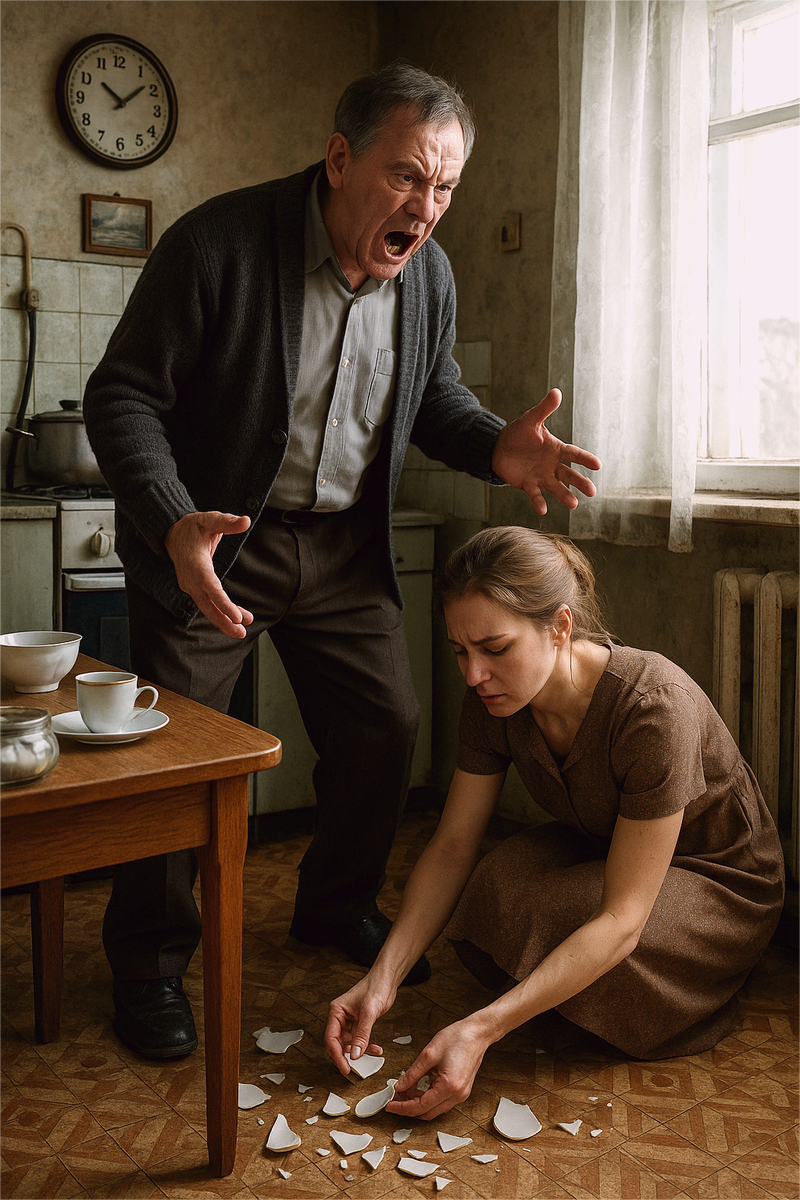 Они поссорились из-за пустяка — разбитой чашки из сервиза. Старой советской чашки с золотой каёмкой. "Это был мамин сервиз!" — закричал отец, когда чашка выскользнула из рук Маши и разлетелась осколками по кухонному полу.