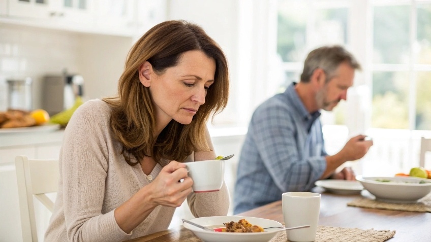 — У нас что, завтрак отменяется? — буркнул Игорь, заходя на кухню. Он был без футболки, с телефона уже шёл голосовой чат с коллегами. — Марин, ты чё, заболела, что ли?