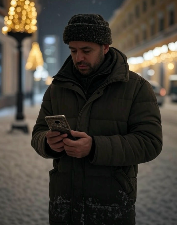 Москва, декабрь 2024 года. Снег сыпал мелкой крупой, оседая на воротнике пальто Артёма. Он шагал по Тверской, засунув руки в карманы, чтобы хоть немного согреться. Ветер завывал, пробираясь сквозь шерстяной шарф, а новогодние гирлянды над улицей мигали, будто дразня его хмурое настроение. Пахло мокрым асфальтом, выхлопами и чем-то сладким — где-то рядом жарили каштаны. Артём, тридцатилетний программист с тёмными кругами под глазами, нёс в кармане старый телефон. Потёртый «Самсунг» с треснувшим экраном, который не включался уже два года. Сегодня он решил его оживить — и, может быть, разобраться с тем, что не давало покоя всё это время.