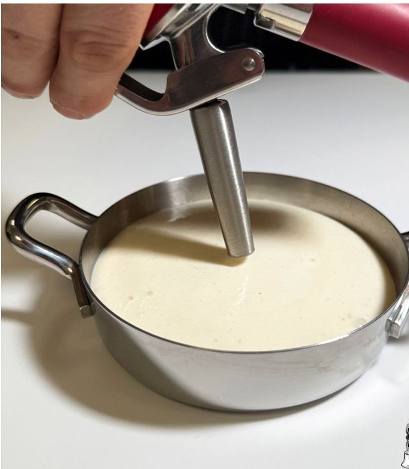 #Мусс ПЕКОКОРИНО - ПАРМЕЗАН Рецепт: На 2 порции🔪👨🍳 Ингредиенты: Пармезан - 75г., натереть Пекорино - 75г., натереть Молоко - 200г. Сливки 35% - 60г. Сливочное масло - 40г. Прошутто - 20г., тонко нарезать Зубчик чеснока - 2шт. Тимьян- 2шт. Мускатный орех - 1г. Соль - 2г. Перец белый - по вкусу Технология: В небольшом сотейнике соединяем сливочное масло, слайсы прошуто, тимьян и чеснок и нагреваем на слабом огне. В разогретом Термомиксе смешиваем пармезан, пекорино, наливаем молоко, сливки и 30г. процеженного ароматизированного масла. Добавляем мускатный орех, соль и белый перец. Пробиваем на третьей скорости при 60С в течение 10 минут. Процеживаем смесь через мелкое сито и переливаем в кремер объемом 0,5 л. Заряжаем одним баллончиком и хорошо встряхиваем. Поддерживаем t* мусса 55-60C до подачи. Вкусный шеф 🔪🙌 https://dzen.ru/id/61f9fc43e12eb66e70d778ef