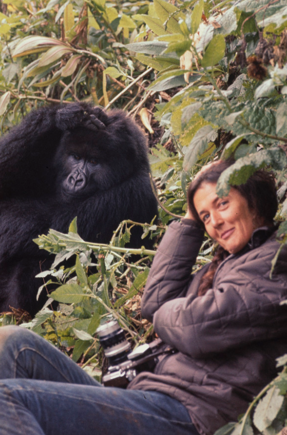 Если когда-то вы представляли себе, как человек может сидеть рядом с дикой гориллой без страха — скорее всего, вы видели это фото. На нём Дайан Фосси — учёная, посвятившая жизнь горным гориллам в Руанде — и самка гориллы по кличке Дигит. Они вместе, почти равные, почти зеркальные. Не клетка, не агрессия, не цирк. Просто два существа, которые выбрали быть рядом.