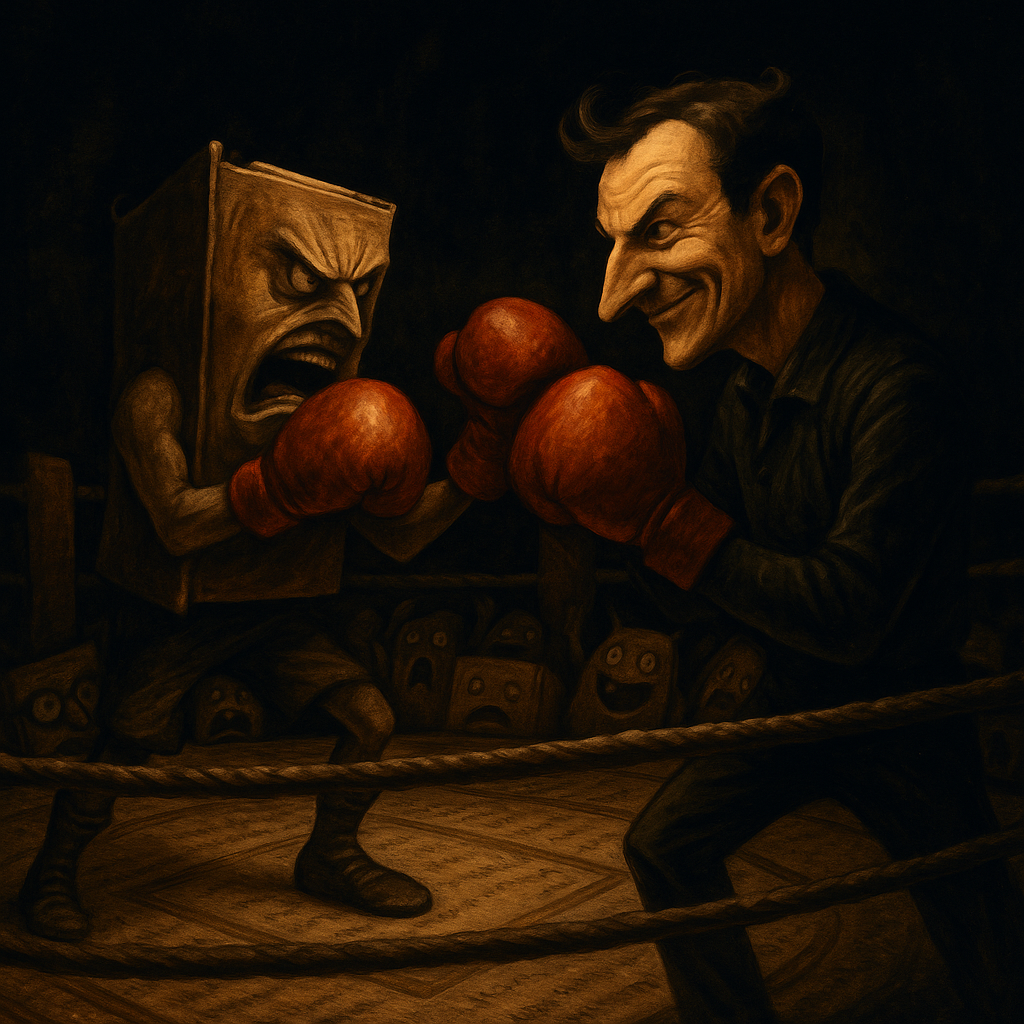 Я знаю, что вы думаете. «Ещё один книжный канал, ещё один графоман будет умничать и поучать, как нам жить». Понимаю ваше негодование, разделяю ваш сарказм и уважаю ваш цинизм. Да и сам я всегда считал, что в литературной критике должен быть не только пафос и псевдоумные сентенции, но и немалая доля иронии, здоровой наглости и дерзкого хулиганства. Именно поэтому я решил запустить «Книгосмотр» — канал, на котором каждую неделю буду устраивать настоящие литературные разборки. И не просто разборки, а с оттенком лёгкого безумия, ядреного юмора и щедрой щепоткой острого перца сатиры. Коротко говоря, обещаю весело и со вкусом хвалить или с удовольствием критиковать новинки литературы. И поверьте, скучно не будет никому — ни авторам, ни читателям. Что вы найдёте здесь? Не скучные, вымученные обзоры в духе «автор раскрыл тему», нет. Тут будет бой без правил. За каждое удачное предложение автору будут аплодисменты, возможно, даже стоя. А за каждый неудачный пассаж — лихой литературный удар, от
