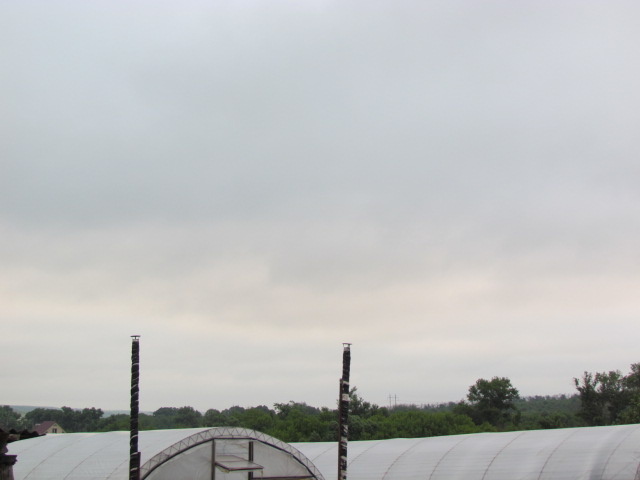 Доброе утро, друзья! Хороший дождик упорно обходит нас стороной. Не помню уж от кого услышала примету, что там, где живет много ведьм и колдунов, дожди не идут. Я, если что, не ведьма) Мне бы очень дождика хотелось. Вот настолько вчерашние недоразумения промочили землю: А срывались с таким нажимом и ветром, казалось, точно вот-вот сейчас разверзнутся хляби небесные и будет нам счастье. Но снова мимо... Я статью вчера написала и выдвинулась с тяпкой на большую грядку помидоров. Неспеша с перекусами на клубнику всю ее и прошла. Активно цветут, завязи наливаются, кусты низкорослых распушились. Индеты все еще лежат, даже не знаю, подвяжем ли или нет... Но стричь буду в обязательном порядке. Черри по внешнему виду, как будто готовы зреть. Рановато как-то... Раньше конца июня я их не жду. Павел же дождался, когда у меня работы приблизятся к завершению и поставил воду для бролей. Вот до дождя и успели еще 3 штук переселить в холодильник. А потом поднялся холодный ветер, и застучали по крыше п