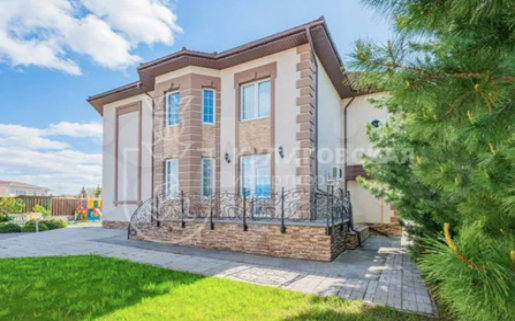 Описание: В доме пять просторных комнат, выполнен современный и стильный интерьер. Участок площадью 10,5 соток включает дополнительный двухэтажный деревянный дом — на первом этаже баня, на втором комфортная жилая комната с выходом на балкон. Для отдыха на участке оборудована беседка из сруба.