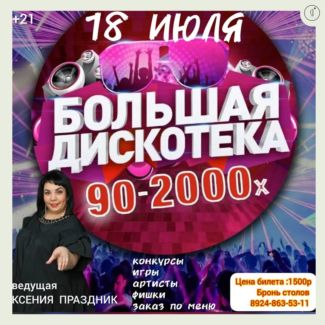 Большая дискотека 90х-2000х #Концерты #Вечером Что ждет? - веселые конкурсы и увлекательные игры - фишки вечера - музыкальные сюрпризы от ведущих артистов - Лучшие хиты 90-х, 2000-х - Дресс- код 👟🧢 18 июля | 18:00-23:00 Фортуна, Чернышевского, 59 1500 руб. +79248635311 Online Якутия | Подписаться